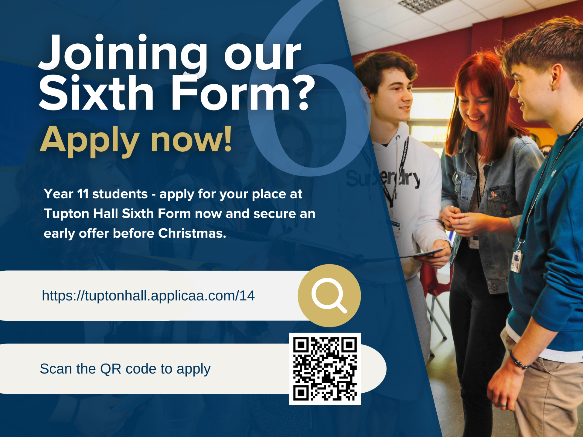 Applications for the Sixth Form are handled online through the Aplicaa app: https://tuptonhall.applicaa.com/6